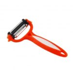 - Slicer removes fruit from skin in perfectly even slices.