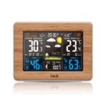 This is a wireless digital weather station with colorful LCD display. It measures temperature and humidity with 2 switchable units display. Large screen shows you time, date, month and week and comes with snooze alarm function. Voice-activated backlit is energy saving and more convenient for you to use.