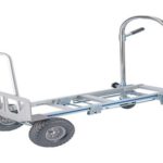 Composed of steel frame and aluminum pedals, the ladder comes with 330lb load capacity while the hand truck can carry up 176lb.