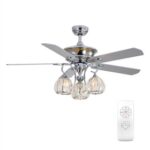 5 reversible plywood blades, chrome finish, 14-degrees blade pitch provides greater air movement.