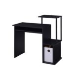 It features two open storage compartments with a desktop shelf, while an under-desk tray keeps your keyboard hidden and frees up desktop space.
