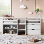This bunk bed has a full-size upper bed, a full-size bottom bed, and a pair of drawers for you or the person who stays overnight. It can also be divided into two separate beds for more convenience, depending on how you want to organize your space. No spring box is required.