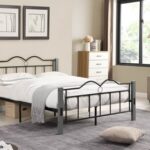 The bed is accented by a tall black metal frame with a wood slat foundation made to support your foam, latex, or spring mattress without a box spring.