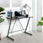 This office computer desk is constructed of an iron tube with a black powder coating and two diagonal braces in the middle to enhance its stability.