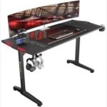 The Eureka desk has a wide 60-inch carbon fiber textured desktop with plenty of surfaces for your gaming monitors, gaming keyboard, and other gaming gear.