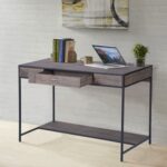 This contemporary computer desk with 2 drawers delivers a sleek modern design, constructed with a wood frame.