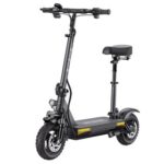 The electric scooter is equipped with dual disk brake on the front wheel and the rear wheel.