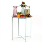 Featuring solid wood tray tops that are fixed in place with metal accents and metal legs.