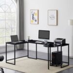 Simple yet Stylish:Simple lined framework combined with black finish, this L-shaped desk looks attractive with its modern and stylish appearance. All black design makes the desk perfectly match with any home decor.