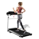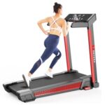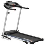 The Merax treadmill has a large running surface, which gives a natural feeling while protecting the joints. It offers a space-saving installation and easy positioning thanks to a foldable construction with floor rollers.