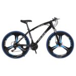 The aluminum mountain bike frame is very suitable for off-road travel. The 26-inch wheels are suitable for riders from 5'0" to 6'4" in height. A 21-speed transmission with a rear derailleur makes shifting easy. Mechanical disc brakes can provide additional braking force.