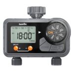 The watering timer has a rain delay setting that helps you conserve water and postpone your schedule 24/48/72 hours then resume it.
