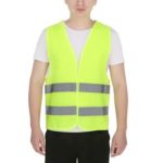 Safety reflective running gear bands with fluorescent green elasticated reflective fabric tape providing 360-degree visibility at night.