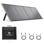 ROCKPALS 200W features a foldable design with a handle. It is IP65 waterproof to endure all weather conditions, ideal for outdoor activities such as camping, climbing, hiking, and picnicking.