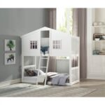 This design includes two ladders on each side for easy climbing, while metal support slats remove the need for box springs.