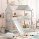 Featuring a pitched roof, sweetheart-designed window, and slide, this unique and intricately designed bunk bed creates a fun and adorable space that not only serves as a comfortable sleeping area but also double as a space for your kids to play and have fun.