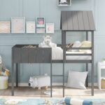 Crafted from high-quality solid pine wood, the loft bed frame can last for a long time use. The bed is supported by 10 plywood slats, no box spring box is needed. The roof is made from MDF boards, ensuring strong stability and durability.