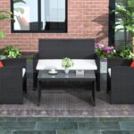 Comes with 4-inch thick lofty sponge padded cushions for more comfort and relaxation. Fashion design of the woven pattern om seat part and table shelf.