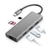 5 in 1 USB Type-C hub includes 3 USB 3.0 ports, one SD Card Reader and one Micro SD (TF) Card Reader, providing you with high speed data transfer rate.