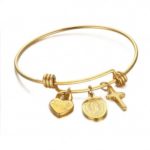 This wire expandable bangle features with Hamsa hand pendant and turquoise bead, after 18K gold plating and high polish, it is full of gloss. Easy to match and suitable for any style of clothes, a perfect gift for friends, family, co-workers and etc.